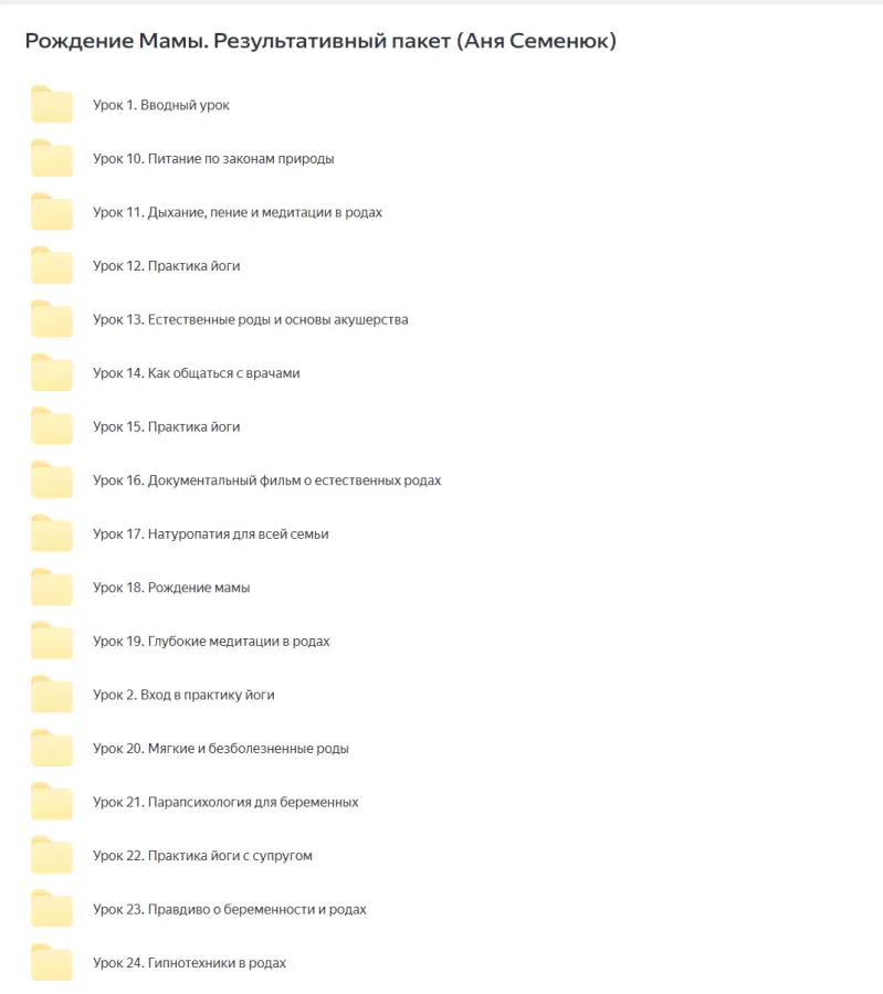 Вы находитесь на странице товара «Аня Семенюк - Рождение Мамы. Результативный пакет», это материал который, мы надеемся, принесет вам пользу. Данный курс расположен на платформе «Яндекс Диск».Скриншоты с платформы на которой расположены материалы вы можете найти выше. В нашем магазине курсы доступны по самым выгодным ценам. Вы получаете этот курс, купив в нашем магазине MANY-COURSES.NET, с огромной скидкой, всего 290 рублей. Обучающий курс входит в рубрику «Дети и родители», вы можете поискать другие сливы курсов в этой рубрике. В нашем магазине Вы найдёте ещё много курсов от автора «Аня Семенюк», достаточно ввести в поиск имя автора.