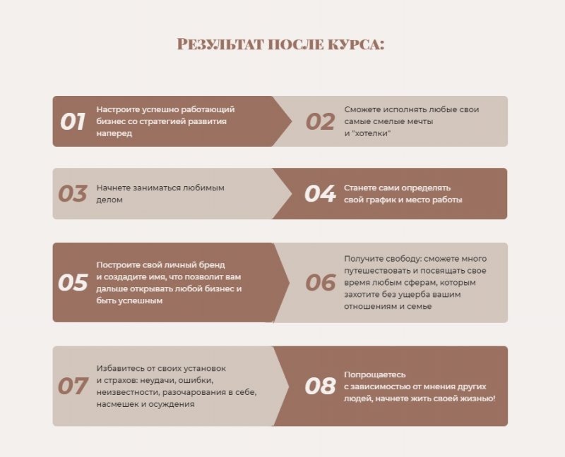 — Завоюете первые рубежи и увидите, как много путей и возможностей лежат прямо перед вами. Построите стратегию по постоянному развитию и забудете про финансовый потолок. Масштабируете и автоматизируете ваш бизнес, сможете наконец-то отправиться в кругосветку с любимыми.