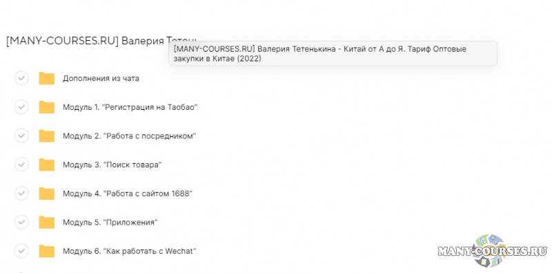 Вы находитесь на странице товара «Валерия Тетенькина - Китай от А до Я. Тариф Оптовые закупки в Китае», это материал 2022 года, который, мы надеемся, принесет вам пользу. Данный курс расположен на платформе «Облако Mail».Скриншоты с платформы на которой расположены материалы вы можете найти выше. В нашем магазине курсы доступны по самым выгодным ценам. Вы получаете этот курс, купив в нашем магазине MANY-COURSES.NET, с огромной скидкой, всего 360 рублей. Обучающий курс входит в рубрику «Бизнес, менеджмент, продажи», вы можете поискать другие сливы курсов в этой рубрике. В нашем магазине Вы найдёте ещё много курсов от автора «Валерия Тетенькина», достаточно ввести в поиск имя автора.