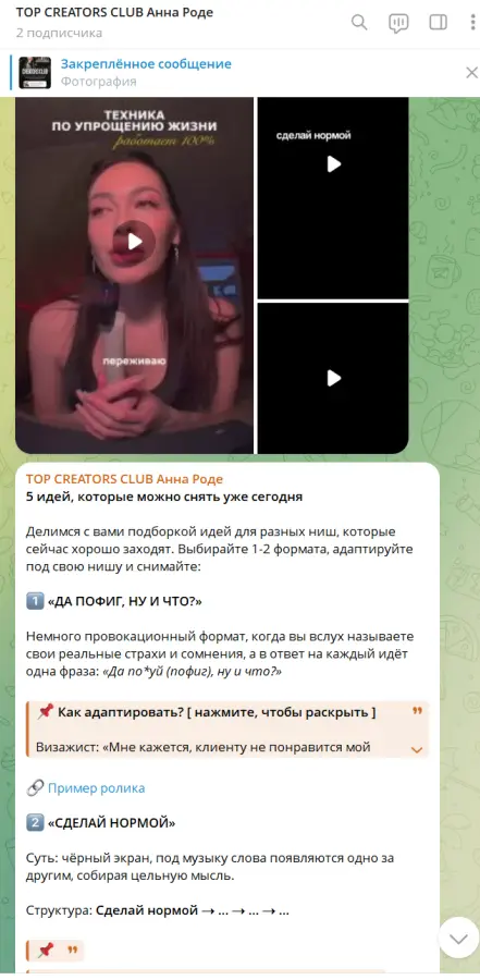 Получи закрытый доступ к идеям контента, вирусным трендам и стратегии набора аудитории от Анны Роде.
