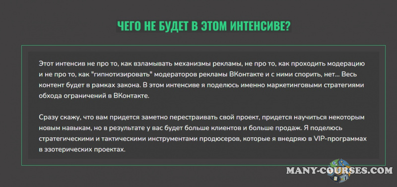 Вы находитесь на странице товара «Сергей Загородников - Как продвигать эзотерику и запрещенку в ВК», это материал 2022 года, который, мы надеемся, принесет вам пользу. Данный курс расположен на платформе «Облако Mail».Скриншоты с платформы на которой расположены материалы вы можете найти выше. В нашем магазине курсы доступны по самым выгодным ценам. Вы можете перейти на оригинальный продажник, после чего принять решение о покупке. Если бы вы покупали у самого автора, то данный курс вам обошелся 5000 рублей. Вы получаете этот курс, купив в нашем магазине MANY-COURSES.NET, с огромной скидкой, всего 100 рублей. Обучающий курс входит в рубрику «Бизнес, менеджмент, продажи / SEO и SMM / Вконтакте (VK)», вы можете поискать другие сливы курсов в этой рубрике. В нашем магазине Вы найдёте ещё много курсов от автора «Сергей Загородников», достаточно ввести в поиск имя автора.