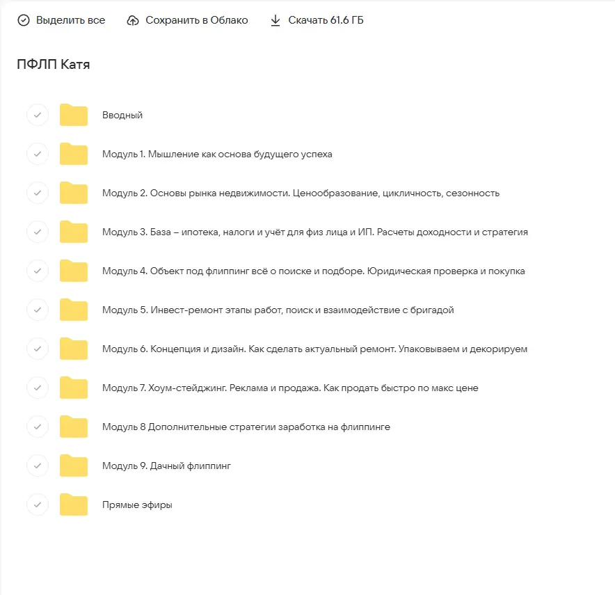 Вы находитесь на странице товара «Екатерина Фролова, Ангелина Бобровская - Pro Флиппинг. 3 поток. Тариф Standart», это материал который, мы надеемся, принесет вам пользу. Данный курс расположен на платформе «Облако Mail».Скриншоты с платформы на которой расположены материалы вы можете найти выше. В нашем магазине курсы доступны по самым выгодным ценам. Вы получаете этот курс, купив в нашем магазине MANY-COURSES.NET, с огромной скидкой, всего 990 рублей. Обучающий курс входит в рубрику «Бизнес, менеджмент, продажи», вы можете поискать другие сливы курсов в этой рубрике. В нашем магазине Вы найдёте ещё много курсов от автора «Екатерина Фролова, Ангелина Бобровская», достаточно ввести в поиск имя автора.