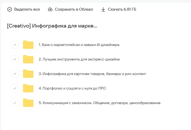 Вы находитесь на странице товара «Creativo / Андрей Баталов - Инфографика для маркетплейсов 2026. Тариф Стандарт», это материал 2023 года, который, мы надеемся, принесет вам пользу. Данный курс расположен на платформе «Облако Mail».Скриншоты с платформы на которой расположены материалы вы можете найти выше. В нашем магазине курсы доступны по самым выгодным ценам. Вы можете перейти на оригинальный продажник, после чего принять решение о покупке. Вы получаете этот курс, купив в нашем магазине MANY-COURSES.NET, с огромной скидкой, всего 1150 рублей. Обучающий курс входит в рубрику «Бизнес, менеджмент, продажи / Маркетплейсы», вы можете поискать другие сливы курсов в этой рубрике. В нашем магазине Вы найдёте ещё много курсов от автора «Андрей Баталов», достаточно ввести в поиск имя автора.