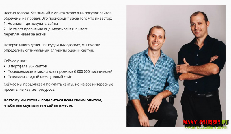 Поэтому мы готовы поделиться всем своим опытом, чтобы мы скупили эти сайты вместе.