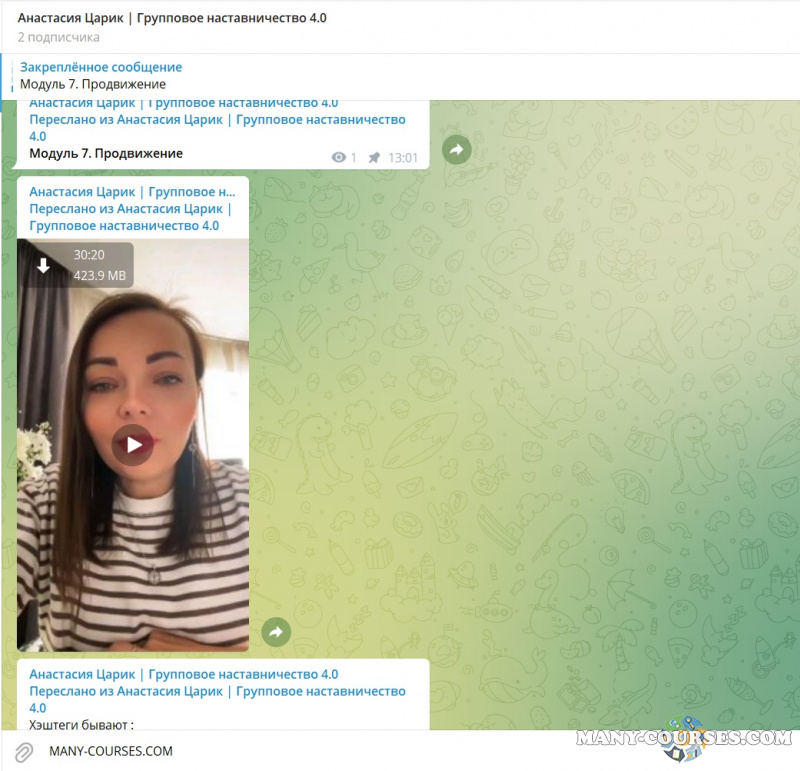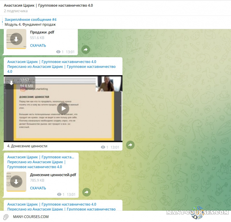 Вы находитесь на странице товара «Анастасия Царик - Групповое наставничество 4.0», это материал 2022 года, который, мы надеемся, принесет вам пользу. Данный курс расположен на платформе «Канал Telegram».Скриншоты с платформы на которой расположены материалы вы можете найти выше. В нашем магазине курсы доступны по самым выгодным ценам. Вы можете перейти на оригинальный продажник, после чего принять решение о покупке. Вы получаете этот курс, купив в нашем магазине MANY-COURSES.NET, с огромной скидкой, всего 590 рублей. Обучающий курс входит в рубрику «Бизнес, менеджмент, продажи», вы можете поискать другие сливы курсов в этой рубрике. В нашем магазине Вы найдёте ещё много курсов от автора «Анастасия Царик», достаточно ввести в поиск имя автора.