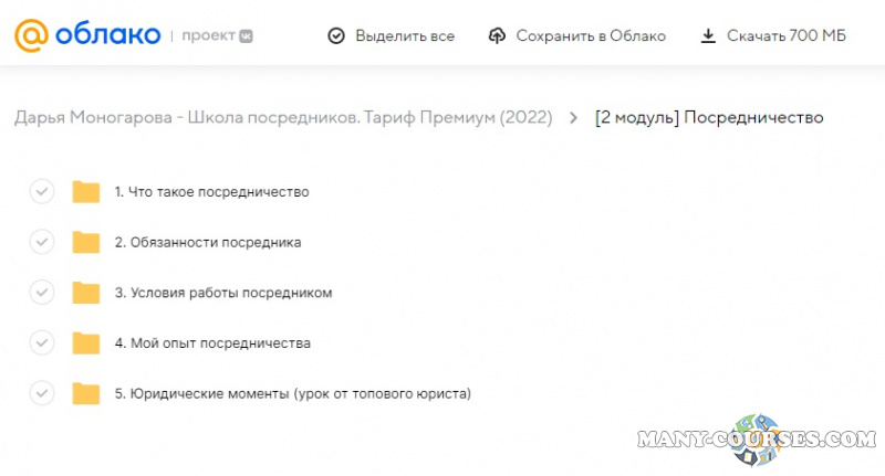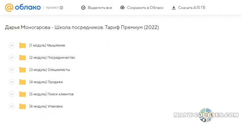 Вы находитесь на странице товара «Дарья Моногарова - Школа посредников. Тариф Премиум», это материал 2022 года, который, мы надеемся, принесет вам пользу. Данный курс расположен на платформе «Облако Mail».Скриншоты с платформы на которой расположены материалы вы можете найти выше. В нашем магазине курсы доступны по самым выгодным ценам. Вы можете перейти на оригинальный продажник, после чего принять решение о покупке. Если бы вы покупали у самого автора, то данный курс вам обошелся 17900 рублей. Вы получаете этот курс, купив в нашем магазине MANY-COURSES.NET, с огромной скидкой, всего 490 рублей. Обучающий курс входит в рубрику «Бизнес, менеджмент, продажи», вы можете поискать другие сливы курсов в этой рубрике. В нашем магазине Вы найдёте ещё много курсов от автора «Дарья Моногарова», достаточно ввести в поиск имя автора.