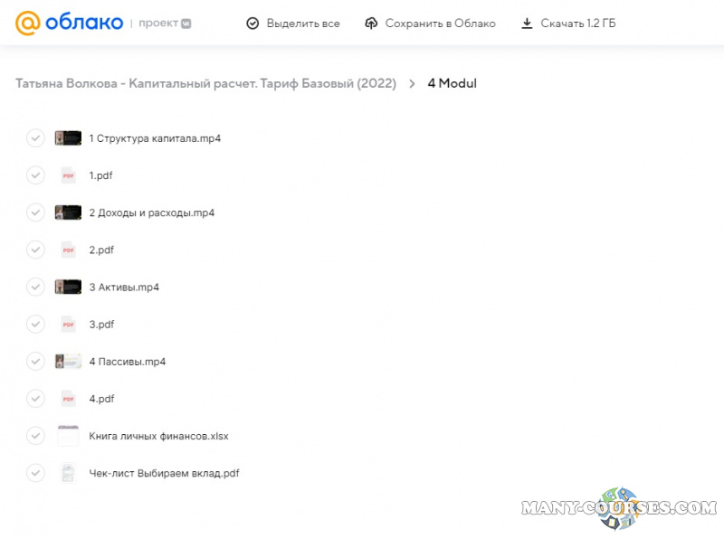 Вы находитесь на странице товара «Татьяна Волкова - Капитальный расчет. Тариф Базовый», это материал 2022 года, который, мы надеемся, принесет вам пользу. Данный курс расположен на платформе «Облако Mail».Скриншоты с платформы на которой расположены материалы вы можете найти выше. В нашем магазине курсы доступны по самым выгодным ценам. Вы получаете этот курс, купив в нашем магазине MANY-COURSES.NET, с огромной скидкой, всего 200 рублей. Обучающий курс входит в рубрику «Бизнес, менеджмент, продажи», вы можете поискать другие сливы курсов в этой рубрике. В нашем магазине Вы найдёте ещё много курсов от автора «Татьяна Волкова», достаточно ввести в поиск имя автора.