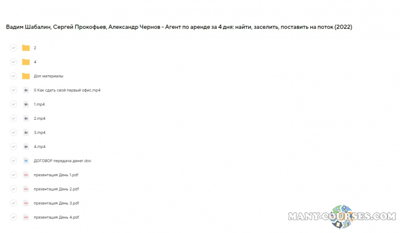 Вы находитесь на странице товара «Вадим Шабалин, Сергей Прокофьев, Александр Чернов - Агент по аренде за 4 дня: найти, заселить, поставить на поток (2022)», это материал 2022 года, который, мы надеемся, принесет вам пользу. Данный курс расположен на платформе «Облако Mail».Скриншоты с платформы на которой расположены материалы вы можете найти выше. В нашем магазине курсы доступны по самым выгодным ценам. Вы можете перейти на оригинальный продажник, после чего принять решение о покупке. Вы получаете этот курс, купив в нашем магазине MANY-COURSES.NET, с огромной скидкой, всего 349 рублей. Обучающий курс входит в рубрику «Бизнес, менеджмент, продажи», вы можете поискать другие сливы курсов в этой рубрике. В нашем магазине Вы найдёте ещё много курсов от автора «Вадим Шабалин, Сергей Прокофьев, Александр Чернов», достаточно ввести в поиск имя автора.