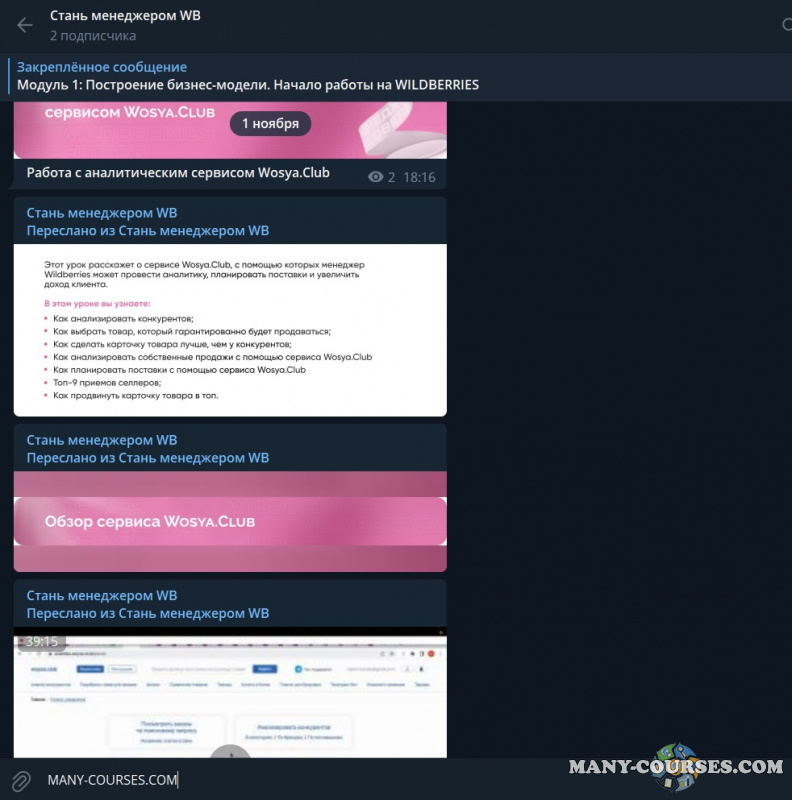 Вы находитесь на странице товара «Лиза Миллер, Артемий Миллер - Стань менеджером Wildberries. Тариф Все включено», это материал 2022 года, который, мы надеемся, принесет вам пользу. Данный курс расположен на платформе «Канал Telegram».Скриншоты с платформы на которой расположены материалы вы можете найти выше. В нашем магазине курсы доступны по самым выгодным ценам. Вы можете перейти на оригинальный продажник, после чего принять решение о покупке. Вы получаете этот курс, купив в нашем магазине MANY-COURSES.NET, с огромной скидкой, всего 349 рублей. Обучающий курс входит в рубрику «Бизнес, менеджмент, продажи / Wildberries», вы можете поискать другие сливы курсов в этой рубрике. В нашем магазине Вы найдёте ещё много курсов от автора «Лиза Миллер, Артемий Миллер», достаточно ввести в поиск имя автора.