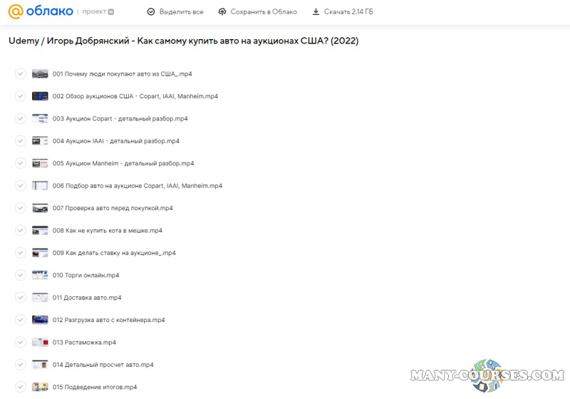 Вы находитесь на странице товара «Udemy / Игорь Добрянский - Как самому купить авто на аукционах США?», это материал 2022 года, который, мы надеемся, принесет вам пользу. Данный курс расположен на платформе «Облако Mail».Скриншоты с платформы на которой расположены материалы вы можете найти выше. В нашем магазине курсы доступны по самым выгодным ценам. Вы получаете этот курс, купив в нашем магазине MANY-COURSES.NET, с огромной скидкой, всего 490 рублей. Обучающий курс входит в рубрику «Бизнес, менеджмент, продажи», вы можете поискать другие сливы курсов в этой рубрике. В нашем магазине Вы найдёте ещё много курсов от автора «Игорь Добрянский», достаточно ввести в поиск имя автора.