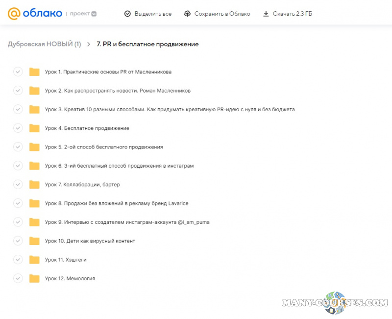 Вы находитесь на странице товара «Ангелина Дубровская - Применяй и зарабатывай. Интернет-маркетинг. Продажи. Pr. Самостоятельный», это материал 2022 года, который, мы надеемся, принесет вам пользу. Данный курс расположен на платформе «Облако Mail».Скриншоты с платформы на которой расположены материалы вы можете найти выше. В нашем магазине курсы доступны по самым выгодным ценам. Вы получаете этот курс, купив в нашем магазине MANY-COURSES.NET, с огромной скидкой, всего 590 рублей. Обучающий курс входит в рубрику «Бизнес, менеджмент, продажи / Реклама и маркетинг / Схемы заработка», вы можете поискать другие сливы курсов в этой рубрике. В нашем магазине Вы найдёте ещё много курсов от автора «Ангелина Дубровская», достаточно ввести в поиск имя автора.