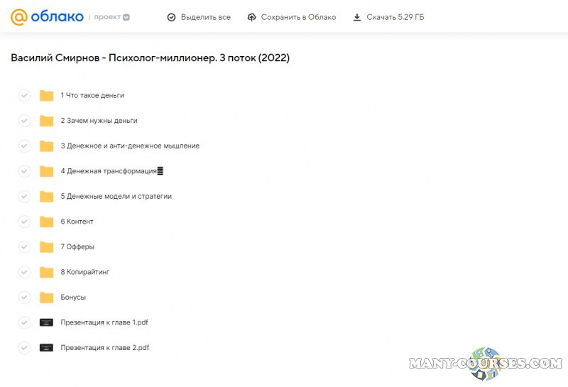 Вы находитесь на странице товара «Василий Смирнов - Психолог-миллионер. 3 поток», это материал 2022 года, который, мы надеемся, принесет вам пользу. Данный курс расположен на платформе «Облако Mail».Скриншоты с платформы на которой расположены материалы вы можете найти выше. В нашем магазине курсы доступны по самым выгодным ценам. Вы получаете этот курс, купив в нашем магазине MANY-COURSES.NET, с огромной скидкой, всего 590 рублей. Обучающий курс входит в рубрику «Бизнес, менеджмент, продажи / Эзотерика и оккультизм / Психология», вы можете поискать другие сливы курсов в этой рубрике. В нашем магазине Вы найдёте ещё много курсов от автора «Василий Смирнов», достаточно ввести в поиск имя автора.