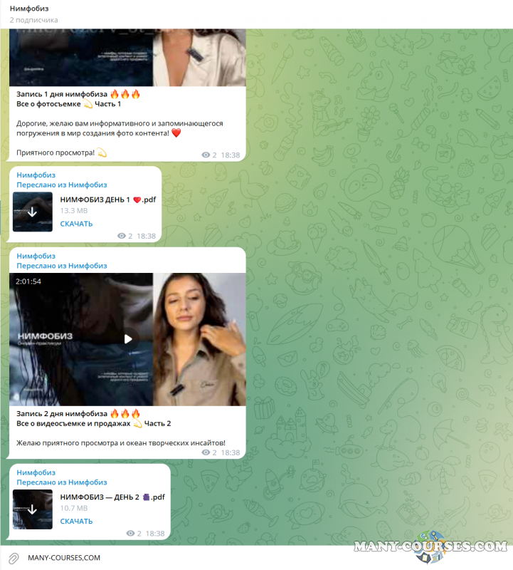 Вы находитесь на странице товара «Двухдневный практикум «Нимфобиз»», это материал 2023 года, который, мы надеемся, принесет вам пользу. Данный курс расположен на платформе «Канал Telegram».Скриншоты с платформы на которой расположены материалы вы можете найти выше. В нашем магазине курсы доступны по самым выгодным ценам. Вы можете перейти на оригинальный продажник, после чего принять решение о покупке. Если бы вы покупали у самого автора, то данный курс вам обошелся 5990 рублей. Вы получаете этот курс, купив в нашем магазине MANY-COURSES.NET, с огромной скидкой, всего 390 рублей. Обучающий курс входит в рубрику «Бизнес, менеджмент, продажи / Реклама и маркетинг / SEO и SMM», вы можете поискать другие сливы курсов в этой рубрике. В нашем магазине Вы найдёте ещё много курсов от автора «», достаточно ввести в поиск имя автора.