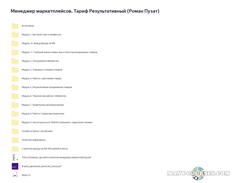 Вы находитесь на странице товара «Роман Пузат - Менеджер маркетплейсов. Тариф Результативный», это материал 2023 года, который, мы надеемся, принесет вам пользу. Данный курс расположен на платформе «Яндекс Диск».Скриншоты с платформы на которой расположены материалы вы можете найти выше. В нашем магазине курсы доступны по самым выгодным ценам. Вы получаете этот курс, купив в нашем магазине MANY-COURSES.NET, с огромной скидкой, всего 390 рублей. Обучающий курс входит в рубрику «Бизнес, менеджмент, продажи / Wildberries / Ozon», вы можете поискать другие сливы курсов в этой рубрике. В нашем магазине Вы найдёте ещё много курсов от автора «Роман Пузат», достаточно ввести в поиск имя автора.