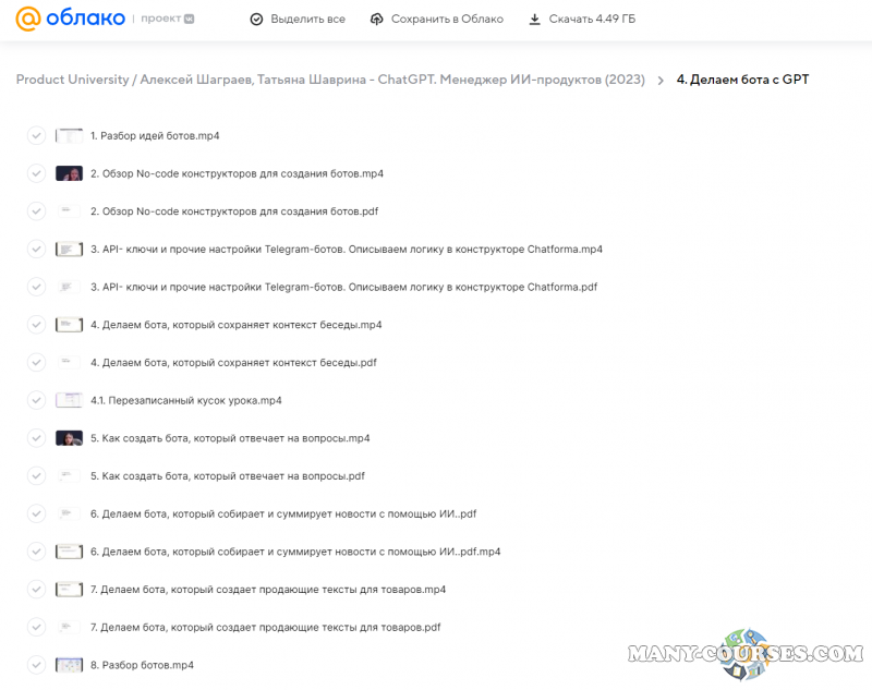 Вы находитесь на странице товара «Product University / Алексей Шаграев, Татьяна Шаврина - ChatGPT. Менеджер ИИ-продуктов», это материал 2023 года, который, мы надеемся, принесет вам пользу. Данный курс расположен на платформе «Облако Mail».Скриншоты с платформы на которой расположены материалы вы можете найти выше. В нашем магазине курсы доступны по самым выгодным ценам. Вы можете перейти на оригинальный продажник, после чего принять решение о покупке. Если бы вы покупали у самого автора, то данный курс вам обошелся 78000 рублей. Вы получаете этот курс, купив в нашем магазине MANY-COURSES.NET, с огромной скидкой, всего 200 рублей. Обучающий курс входит в рубрику «Бизнес, менеджмент, продажи», вы можете поискать другие сливы курсов в этой рубрике. В нашем магазине Вы найдёте ещё много курсов от автора «Алексей Шаграев, Татьяна Шаврина», достаточно ввести в поиск имя автора.