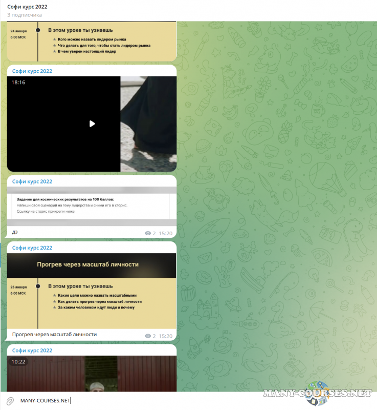 Вы находитесь на странице товара «Кристина Софи - Изнанка запусков. Тариф - Продюсер», это материал 2022 года, который, мы надеемся, принесет вам пользу. Данный курс расположен на платформе «Канал Telegram».Скриншоты с платформы на которой расположены материалы вы можете найти выше. В нашем магазине курсы доступны по самым выгодным ценам. Вы можете перейти на оригинальный продажник, после чего принять решение о покупке. Вы получаете этот курс, купив в нашем магазине MANY-COURSES.NET, с огромной скидкой, всего 1490 рублей. Обучающий курс входит в рубрику «Бизнес, менеджмент, продажи», вы можете поискать другие сливы курсов в этой рубрике. В нашем магазине Вы найдёте ещё много курсов от автора «Кристина Софи», достаточно ввести в поиск имя автора.