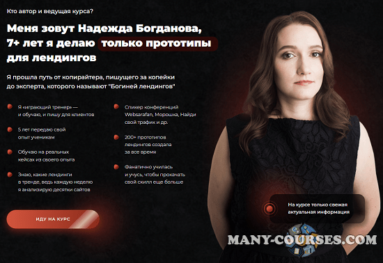 Вы находитесь на странице товара «Надежда Богданова - Продающий лендинг», это материал 2022 года, который, мы надеемся, принесет вам пользу. Данный курс расположен на платформе «Облако Mail».Скриншоты с платформы на которой расположены материалы вы можете найти выше. В нашем магазине курсы доступны по самым выгодным ценам. Вы можете перейти на оригинальный продажник, после чего принять решение о покупке. Если бы вы покупали у самого автора, то данный курс вам обошелся 11100 рублей. Вы получаете этот курс, купив в нашем магазине MANY-COURSES.NET, с огромной скидкой, всего 420 рублей. Обучающий курс входит в рубрику «Бизнес, менеджмент, продажи / Схемы заработка / Реклама и маркетинг», вы можете поискать другие сливы курсов в этой рубрике. В нашем магазине Вы найдёте ещё много курсов от автора «Надежда Богданова», достаточно ввести в поиск имя автора.