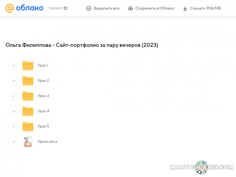 Вы находитесь на странице товара «Ольга Филиппова - Сайт-портфолио за пару вечеров», это материал 2023 года, который, мы надеемся, принесет вам пользу. Данный курс расположен на платформе «Облако Mail».Скриншоты с платформы на которой расположены материалы вы можете найти выше. В нашем магазине курсы доступны по самым выгодным ценам. Вы получаете этот курс, купив в нашем магазине MANY-COURSES.NET, с огромной скидкой, всего 190 рублей. Обучающий курс входит в рубрику «Бизнес, менеджмент, продажи / Создание сайтов», вы можете поискать другие сливы курсов в этой рубрике. В нашем магазине Вы найдёте ещё много курсов от автора «Ольга Филиппова», достаточно ввести в поиск имя автора.