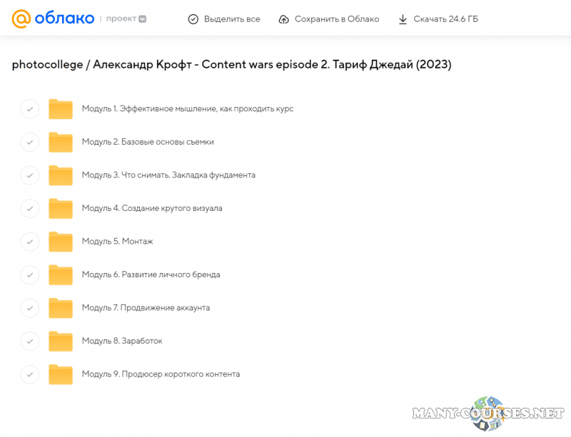 Вы находитесь на странице товара «photocollege / Александр Крофт - Content wars episode 2. Тариф Джедай (2023)», это материал 2023 года, который, мы надеемся, принесет вам пользу. Данный курс расположен на платформе «Облако Mail».Скриншоты с платформы на которой расположены материалы вы можете найти выше. В нашем магазине курсы доступны по самым выгодным ценам. Вы можете перейти на оригинальный продажник, после чего принять решение о покупке. Если бы вы покупали у самого автора, то данный курс вам обошелся 99900 рублей. Вы получаете этот курс, купив в нашем магазине MANY-COURSES.NET, с огромной скидкой, всего 1590 рублей. Обучающий курс входит в рубрику «Бизнес, менеджмент, продажи», вы можете поискать другие сливы курсов в этой рубрике. В нашем магазине Вы найдёте ещё много курсов от автора «Александр Крофт», достаточно ввести в поиск имя автора.
