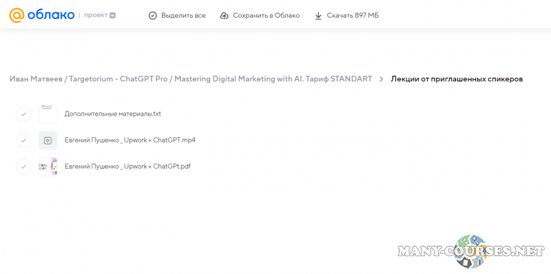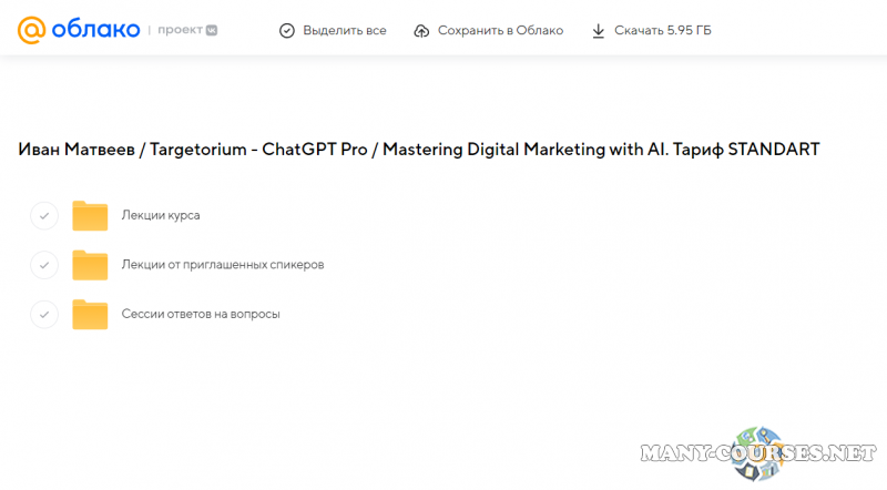 Вы находитесь на странице товара «Иван Матвеев / Targetorium - ChatGPT Pro / Mastering Digital Marketing with AI. Тариф STANDART», это материал 2023 года, который, мы надеемся, принесет вам пользу. Данный курс расположен на платформе «Облако Mail».Скриншоты с платформы на которой расположены материалы вы можете найти выше. В нашем магазине курсы доступны по самым выгодным ценам. Вы можете перейти на оригинальный продажник, после чего принять решение о покупке. Если бы вы покупали у самого автора, то данный курс вам обошелся 16500 рублей. Вы получаете этот курс, купив в нашем магазине MANY-COURSES.NET, с огромной скидкой, всего 200 рублей. Обучающий курс входит в рубрику «Бизнес, менеджмент, продажи / Схемы заработка», вы можете поискать другие сливы курсов в этой рубрике. В нашем магазине Вы найдёте ещё много курсов от автора «Иван Матвеев», достаточно ввести в поиск имя автора.