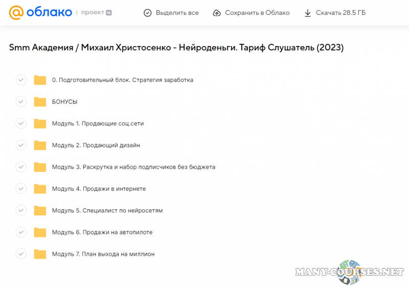 Вы находитесь на странице товара «Smm Академия / Михаил Христосенко - Нейроденьги. Тариф Слушатель (2023)», это материал 2023 года, который, мы надеемся, принесет вам пользу. Данный курс расположен на платформе «Облако Mail».Скриншоты с платформы на которой расположены материалы вы можете найти выше. В нашем магазине курсы доступны по самым выгодным ценам. Вы можете перейти на оригинальный продажник, после чего принять решение о покупке. Если бы вы покупали у самого автора, то данный курс вам обошелся 49000 рублей. Вы получаете этот курс, купив в нашем магазине MANY-COURSES.NET, с огромной скидкой, всего 460 рублей. Обучающий курс входит в рубрику «Бизнес, менеджмент, продажи», вы можете поискать другие сливы курсов в этой рубрике. В нашем магазине Вы найдёте ещё много курсов от автора «Михаил Христосенко», достаточно ввести в поиск имя автора.
