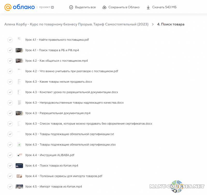 Вы находитесь на странице товара «Алена Корбу - Курс по товарному бизнесу Прорыв. Тариф Самостоятельный», это материал 2023 года, который, мы надеемся, принесет вам пользу. Скриншоты с платформы на которой расположены материалы вы можете найти выше. В нашем магазине курсы доступны по самым выгодным ценам. Вы получаете этот курс, купив в нашем магазине MANY-COURSES.NET, с огромной скидкой, всего 990 рублей. Обучающий курс входит в рубрику «Бизнес, менеджмент, продажи», вы можете поискать другие сливы курсов в этой рубрике. В нашем магазине Вы найдёте ещё много курсов от автора «Алена Корбу», достаточно ввести в поиск имя автора.