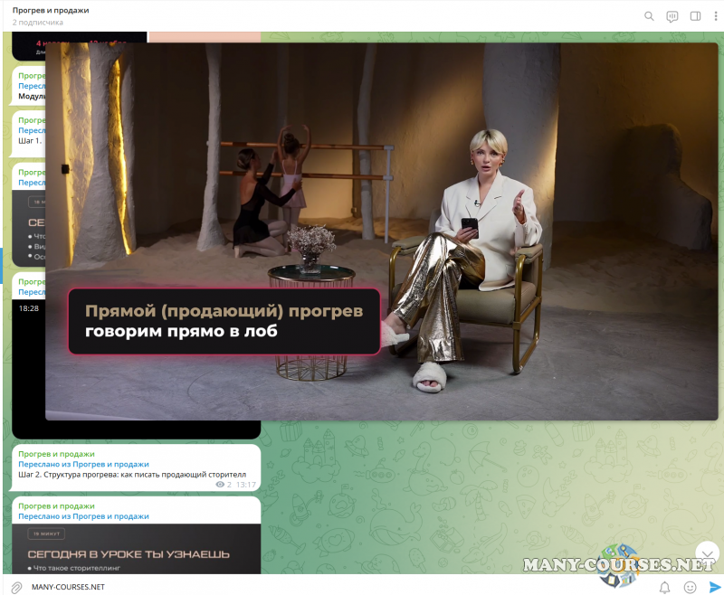 Вы находитесь на странице товара «Кристина Софи - Школа прогревов и продаж. Тариф Эксперт (2024-2023)», это материал 2024 года, который, мы надеемся, принесет вам пользу. Данный курс расположен на платформе «Канал Telegram».Скриншоты с платформы на которой расположены материалы вы можете найти выше. В нашем магазине курсы доступны по самым выгодным ценам. Вы можете перейти на оригинальный продажник, после чего принять решение о покупке. Если бы вы покупали у самого автора, то данный курс вам обошелся 99900 рублей. Вы получаете этот курс, купив в нашем магазине MANY-COURSES.NET, с огромной скидкой, всего 2400 рублей. Обучающий курс входит в рубрику «Бизнес, менеджмент, продажи», вы можете поискать другие сливы курсов в этой рубрике. В нашем магазине Вы найдёте ещё много курсов от автора «Кристина Софи», достаточно ввести в поиск имя автора.