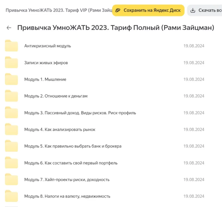 Вы находитесь на странице товара «Рами Зайцман - Привычка УмноЖАТЬ 2023. Тариф VIP», это материал 2023 года, который, мы надеемся, принесет вам пользу. Данный курс расположен на платформе «Яндекс Диск».Скриншоты с платформы на которой расположены материалы вы можете найти выше. В нашем магазине курсы доступны по самым выгодным ценам. Вы можете перейти на оригинальный продажник, после чего принять решение о покупке. Вы получаете этот курс, купив в нашем магазине MANY-COURSES.NET, с огромной скидкой, всего 2790 рублей. Обучающий курс входит в рубрику «Бизнес, менеджмент, продажи», вы можете поискать другие сливы курсов в этой рубрике. В нашем магазине Вы найдёте ещё много курсов от автора «Рами Зайцман», достаточно ввести в поиск имя автора.