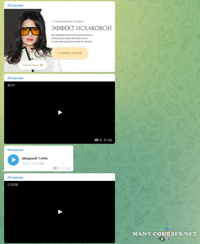 Вы находитесь на странице товара «Карина Исхакова - Эффект (2023)», это материал 2023 года, который, мы надеемся, принесет вам пользу. Данный курс расположен на платформе «Облако Mail».Скриншоты с платформы на которой расположены материалы вы можете найти выше. В нашем магазине курсы доступны по самым выгодным ценам. Вы получаете этот курс, купив в нашем магазине MANY-COURSES.NET, с огромной скидкой, всего 140 рублей. Обучающий курс входит в рубрику «Бизнес, менеджмент, продажи», вы можете поискать другие сливы курсов в этой рубрике. В нашем магазине Вы найдёте ещё много курсов от автора «Карина Исхакова», достаточно ввести в поиск имя автора.