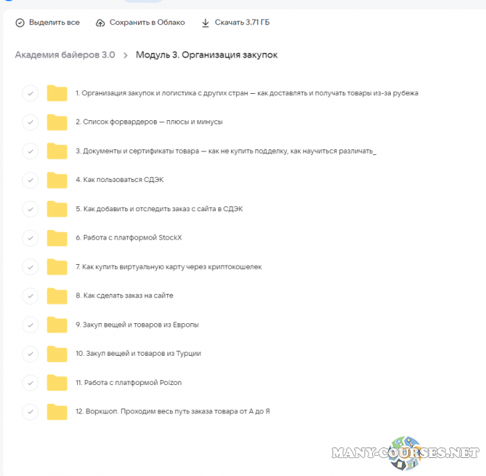 Вы находитесь на странице товара «Юлия Ермакова - Академия байеров 3.0. Тариф: Профессия байер с 0 (2024)», это материал 2024 года, который, мы надеемся, принесет вам пользу. Данный курс расположен на платформе «Облако Mail».Скриншоты с платформы на которой расположены материалы вы можете найти выше. В нашем магазине курсы доступны по самым выгодным ценам. Вы можете перейти на оригинальный продажник, после чего принять решение о покупке. Если бы вы покупали у самого автора, то данный курс вам обошелся 57490 рублей. Вы получаете этот курс, купив в нашем магазине MANY-COURSES.NET, с огромной скидкой, всего 1590 рублей. Обучающий курс входит в рубрику «Бизнес, менеджмент, продажи», вы можете поискать другие сливы курсов в этой рубрике. В нашем магазине Вы найдёте ещё много курсов от автора «Юлия Ермакова», достаточно ввести в поиск имя автора.