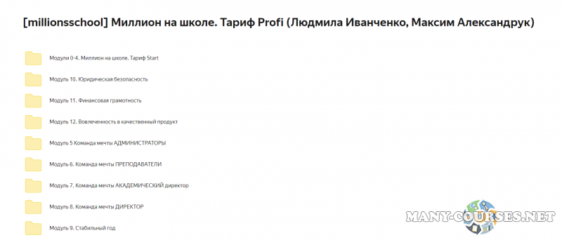 Вы находитесь на странице товара «millionsschool - Миллион на школе. Тариф Profi», это материал 2024 года, который, мы надеемся, принесет вам пользу. Данный курс расположен на платформе «Яндекс Диск».Скриншоты с платформы на которой расположены материалы вы можете найти выше. В нашем магазине курсы доступны по самым выгодным ценам. Вы можете перейти на оригинальный продажник, после чего принять решение о покупке. Если бы вы покупали у самого автора, то данный курс вам обошелся 209900 рублей. Вы получаете этот курс, купив в нашем магазине MANY-COURSES.NET, с огромной скидкой, всего 2590 рублей. Обучающий курс входит в рубрику «Бизнес, менеджмент, продажи», вы можете поискать другие сливы курсов в этой рубрике. В нашем магазине Вы найдёте ещё много курсов от автора «Людмила Иванченко, Максим Александрук», достаточно ввести в поиск имя автора.
