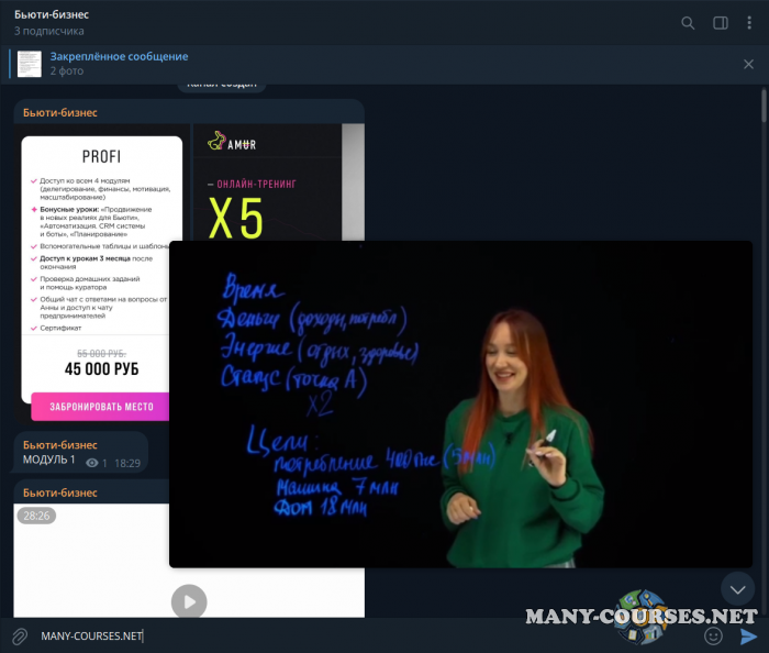 Вы находитесь на странице товара «Анна Мурнина - Х5. Бьюти бизнес как экосистема. Тариф Profi», это материал который, мы надеемся, принесет вам пользу. Данный курс расположен на платформе «Канал Telegram».Скриншоты с платформы на которой расположены материалы вы можете найти выше. В нашем магазине курсы доступны по самым выгодным ценам. Вы можете перейти на оригинальный продажник, после чего принять решение о покупке. Если бы вы покупали у самого автора, то данный курс вам обошелся 45000 рублей. Вы получаете этот курс, купив в нашем магазине MANY-COURSES.NET, с огромной скидкой, всего 1690 рублей. Обучающий курс входит в рубрику «Бизнес, менеджмент, продажи», вы можете поискать другие сливы курсов в этой рубрике. В нашем магазине Вы найдёте ещё много курсов от автора «Анна Мурнина», достаточно ввести в поиск имя автора.