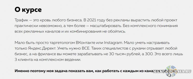 Вы находитесь на странице товара «Дмитрий Румянцев - Эксклюзивный онлайн-курс «Трафик-менеджер» (2020)», это материал 2021 года, который, мы надеемся, принесет вам пользу. Данный курс расположен на платформе «Облако Mail».Скриншоты с платформы на которой расположены материалы вы можете найти выше. В нашем магазине курсы доступны по самым выгодным ценам. Вы можете перейти на оригинальный продажник, после чего принять решение о покупке. Если бы вы покупали у самого автора, то данный курс вам обошелся 37900 рублей. Вы получаете этот курс, купив в нашем магазине MANY-COURSES.NET, с огромной скидкой, всего 249 рублей. Обучающий курс входит в рубрику «Бизнес, менеджмент, продажи», вы можете поискать другие сливы курсов в этой рубрике. В нашем магазине Вы найдёте ещё много курсов от автора «Дмитрий Румянцев», достаточно ввести в поиск имя автора.