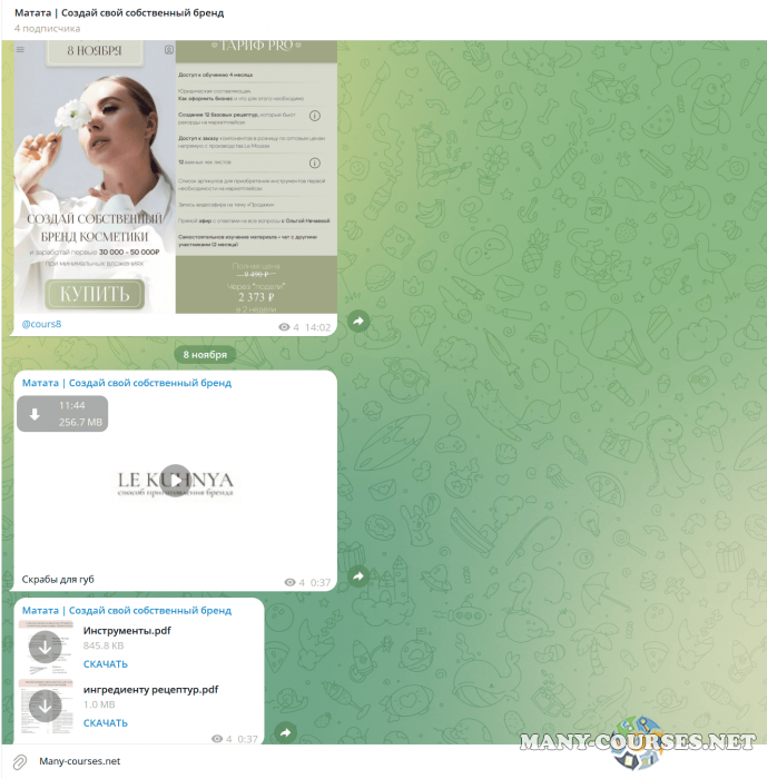 Вы находитесь на странице товара «Le Kuhnya / Ольга Нечаева - Создай собственный бренд косметики. Тариф PRO (2024)», это материал 2024 года, который, мы надеемся, принесет вам пользу. Данный курс расположен на платформе «Канал Telegram».Скриншоты с платформы на которой расположены материалы вы можете найти выше. В нашем магазине курсы доступны по самым выгодным ценам. Вы можете перейти на оригинальный продажник, после чего принять решение о покупке. Если бы вы покупали у самого автора, то данный курс вам обошелся 9490 рублей. Вы получаете этот курс, купив в нашем магазине MANY-COURSES.NET, с огромной скидкой, всего 890 рублей. Обучающий курс входит в рубрику «Бизнес, менеджмент, продажи», вы можете поискать другие сливы курсов в этой рубрике. В нашем магазине Вы найдёте ещё много курсов от автора «Ольга Нечаева», достаточно ввести в поиск имя автора.