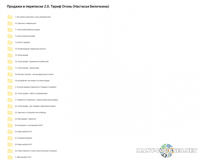 Вы находитесь на странице товара «Настасья Белочкина - Продажи в переписке 2.0. Тариф Огонь», это материал 2024 года, который, мы надеемся, принесет вам пользу. Данный курс расположен на платформе «Яндекс Диск».Скриншоты с платформы на которой расположены материалы вы можете найти выше. В нашем магазине курсы доступны по самым выгодным ценам. Вы можете перейти на оригинальный продажник, после чего принять решение о покупке. Если бы вы покупали у самого автора, то данный курс вам обошелся 39900 рублей. Вы получаете этот курс, купив в нашем магазине MANY-COURSES.NET, с огромной скидкой, всего 1990 рублей. Обучающий курс входит в рубрику «Бизнес, менеджмент, продажи», вы можете поискать другие сливы курсов в этой рубрике. В нашем магазине Вы найдёте ещё много курсов от автора «Настасья Белочкина», достаточно ввести в поиск имя автора.