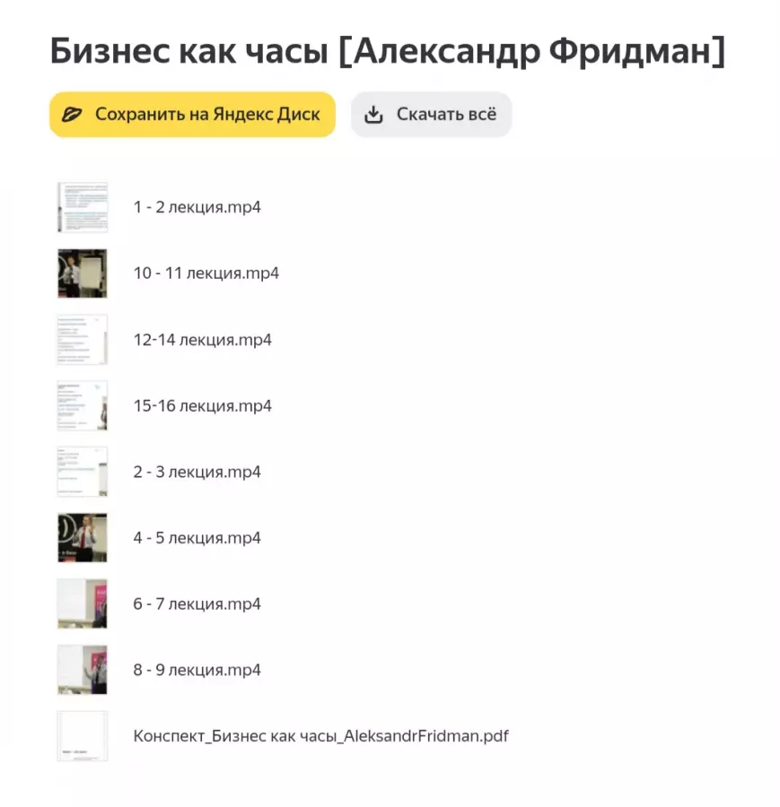 Вы находитесь на странице товара «Александр Фридман - Бизнес как часы. Тариф Стандарт», это материал который, мы надеемся, принесет вам пользу. Данный курс расположен на платформе «Яндекс Диск».Скриншоты с платформы на которой расположены материалы вы можете найти выше. В нашем магазине курсы доступны по самым выгодным ценам. Вы получаете этот курс, купив в нашем магазине MANY-COURSES.NET, с огромной скидкой, всего 1490 рублей. Обучающий курс входит в рубрику «Бизнес, менеджмент, продажи», вы можете поискать другие сливы курсов в этой рубрике. В нашем магазине Вы найдёте ещё много курсов от автора «Александр Фридман», достаточно ввести в поиск имя автора.