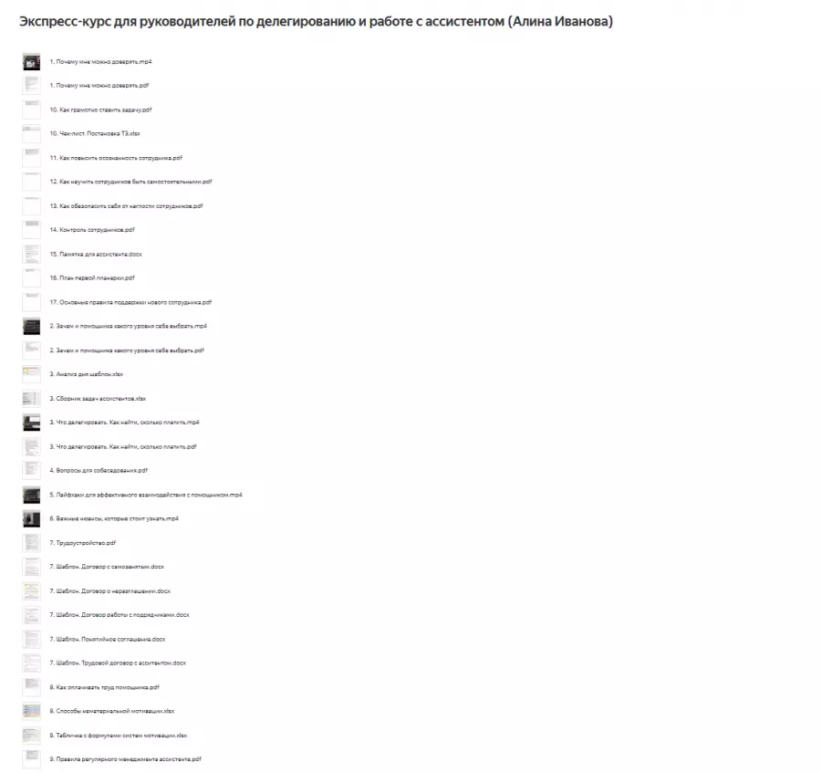 Вы находитесь на странице товара «Алина Иванова - Экспресс-курс для руководителей по делегированию и работе с ассистентом», это материал который, мы надеемся, принесет вам пользу. Данный курс расположен на платформе «Яндекс Диск».Скриншоты с платформы на которой расположены материалы вы можете найти выше. В нашем магазине курсы доступны по самым выгодным ценам. Вы получаете этот курс, купив в нашем магазине MANY-COURSES.NET, с огромной скидкой, всего 890 рублей. Обучающий курс входит в рубрику «Бизнес, менеджмент, продажи», вы можете поискать другие сливы курсов в этой рубрике. В нашем магазине Вы найдёте ещё много курсов от автора «Алина Иванова», достаточно ввести в поиск имя автора.