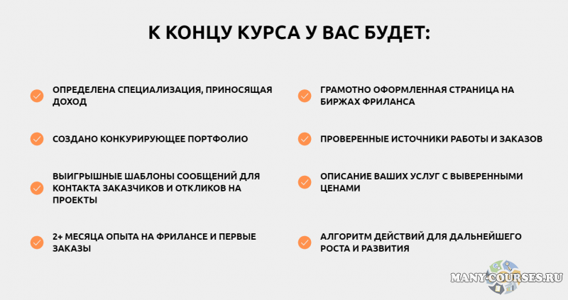 - воркбук с перечнем специализаций на фрилансе (500+ направлений) и с формулой определения выгодной ниши.