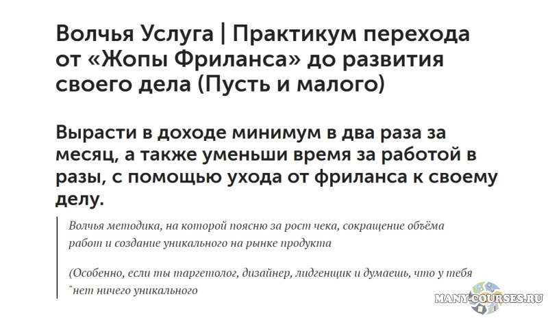 Вы находитесь на странице товара «Волк Чатбот / Denis Ivanov - Волк в мешке (практикум по вылезанию из жопы фриланса)», это материал 2021 года, который, мы надеемся, принесет вам пользу. Данный курс расположен на платформе «Облако Mail».Скриншоты с платформы на которой расположены материалы вы можете найти выше. В нашем магазине курсы доступны по самым выгодным ценам. Вы можете перейти на оригинальный продажник, после чего принять решение о покупке. Если бы вы покупали у самого автора, то данный курс вам обошелся 9990 рублей. Вы получаете этот курс, купив в нашем магазине MANY-COURSES.NET, с огромной скидкой, всего 100 рублей. Обучающий курс входит в рубрику «Бизнес, менеджмент, продажи», вы можете поискать другие сливы курсов в этой рубрике. В нашем магазине Вы найдёте ещё много курсов от автора «Denis Ivanov», достаточно ввести в поиск имя автора.