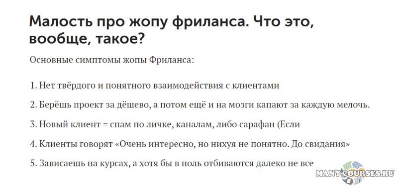 Основные симптомы жопы Фриланса:
