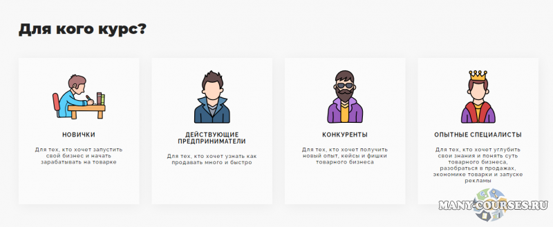 - Опытные специалисты. Для тех, кто хочет углубить свои знания и понять суть товарного бизнеса, разобраться в продажах, экономике товарки и запуске рекламы.