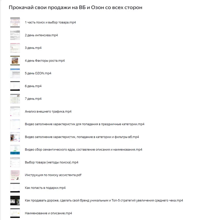 Вы находитесь на странице товара «Просто о маркетплейсах - Главный интенсив Прокачай свои продажи на ВБ и Озон со всех сторон», это материал который, мы надеемся, принесет вам пользу. Данный курс расположен на платформе «Яндекс Диск».Скриншоты с платформы на которой расположены материалы вы можете найти выше. В нашем магазине курсы доступны по самым выгодным ценам. Вы можете перейти на оригинальный продажник, после чего принять решение о покупке. Если бы вы покупали у самого автора, то данный курс вам обошелся 14500 рублей. Вы получаете этот курс, купив в нашем магазине MANY-COURSES.NET, с огромной скидкой, всего 300 рублей. Обучающий курс входит в рубрику «Бизнес, менеджмент, продажи», вы можете поискать другие сливы курсов в этой рубрике. В нашем магазине Вы найдёте ещё много курсов от автора «», достаточно ввести в поиск имя автора.