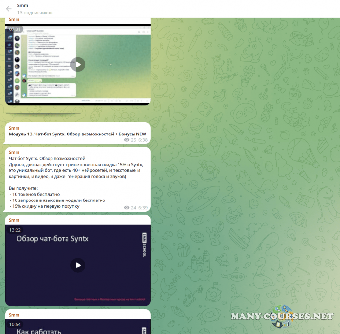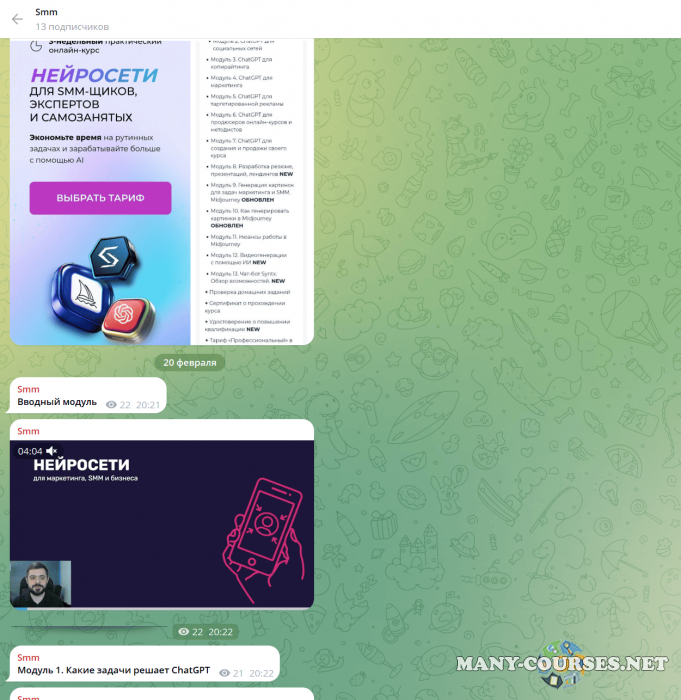 Вы находитесь на странице товара «SMM.school - Нейросети для smm щиков, экспертов и самозанятых. Тариф VIP», это материал 2025 года, который, мы надеемся, принесет вам пользу. Данный курс расположен на платформе «Канал Telegram».Скриншоты с платформы на которой расположены материалы вы можете найти выше. В нашем магазине курсы доступны по самым выгодным ценам. Вы получаете этот курс, купив в нашем магазине MANY-COURSES.NET, с огромной скидкой, всего 1290 рублей. Обучающий курс входит в рубрику «Нейросети / SEO и SMM», вы можете поискать другие сливы курсов в этой рубрике. В нашем магазине Вы найдёте ещё много курсов от автора «Артем Пыхтеев, Анна Гончарова», достаточно ввести в поиск имя автора.