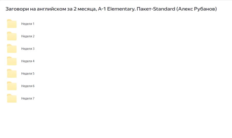 Вы находитесь на странице товара «Алекс Рубанов - Заговори на английском за 2 месяца, A-1 Elementary. Пакет-Standard», это материал который, мы надеемся, принесет вам пользу. Данный курс расположен на платформе «Яндекс Диск».Скриншоты с платформы на которой расположены материалы вы можете найти выше. В нашем магазине курсы доступны по самым выгодным ценам. Вы получаете этот курс, купив в нашем магазине MANY-COURSES.NET, с огромной скидкой, всего 280 рублей. Обучающий курс входит в рубрику «Иностранные языки / Английский язык», вы можете поискать другие сливы курсов в этой рубрике. В нашем магазине Вы найдёте ещё много курсов от автора «Алекс Рубанов», достаточно ввести в поиск имя автора.