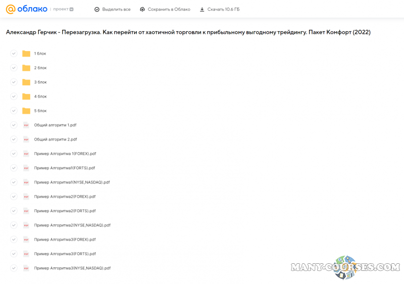 Вы находитесь на странице товара «Александр Герчик - Перезагрузка. Как перейти от хаотичной торговли к прибыльному выгодному трейдингу. Пакет Комфорт», это материал 2022 года, который, мы надеемся, принесет вам пользу. Данный курс расположен на платформе «Облако Mail».Скриншоты с платформы на которой расположены материалы вы можете найти выше. В нашем магазине курсы доступны по самым выгодным ценам. Вы получаете этот курс, купив в нашем магазине MANY-COURSES.NET, с огромной скидкой, всего 500 рублей. Обучающий курс входит в рубрику «Инвестиции, Трейдинг, Криптовалюта», вы можете поискать другие сливы курсов в этой рубрике. В нашем магазине Вы найдёте ещё много курсов от автора «Александр Герчик», достаточно ввести в поиск имя автора.