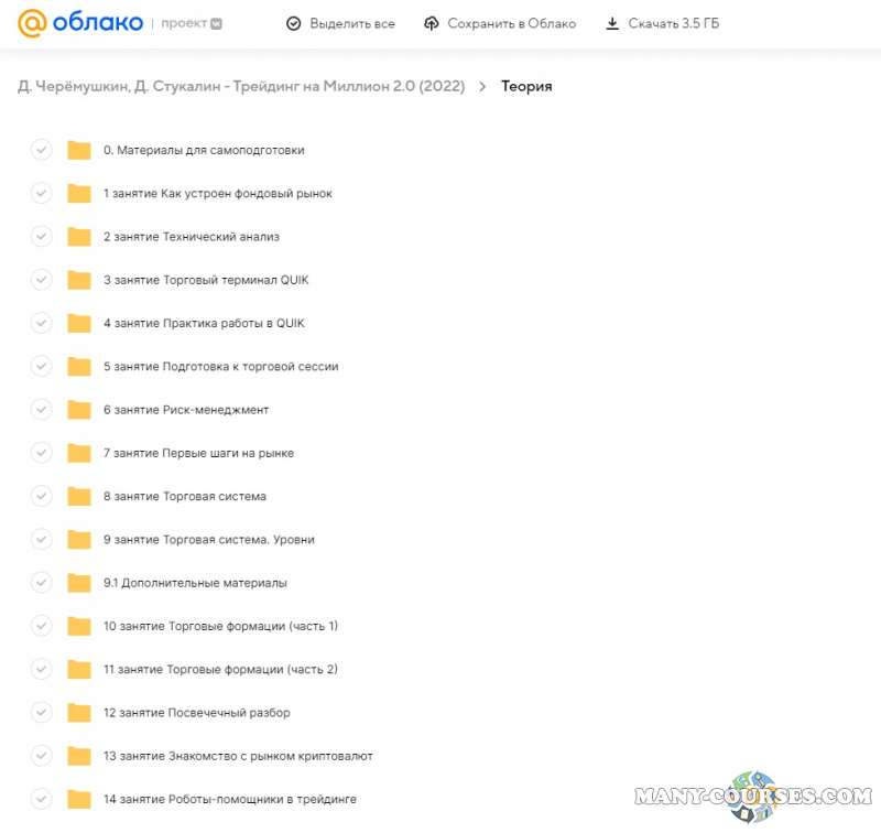 Вы находитесь на странице товара «Д. Черёмушкин, Д. Стукалин - Трейдинг на Миллион 2.0», это материал 2022 года, который, мы надеемся, принесет вам пользу. Данный курс расположен на платформе «Облако Mail».Скриншоты с платформы на которой расположены материалы вы можете найти выше. В нашем магазине курсы доступны по самым выгодным ценам. Вы получаете этот курс, купив в нашем магазине MANY-COURSES.NET, с огромной скидкой, всего 390 рублей. Обучающий курс входит в рубрику «Инвестиции, Трейдинг, Криптовалюта», вы можете поискать другие сливы курсов в этой рубрике. В нашем магазине Вы найдёте ещё много курсов от автора «Д. Черёмушкин, Д. Стукалин», достаточно ввести в поиск имя автора.
