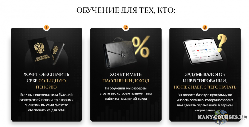 Обучение финансовой грамотности и инвестициям от Артемия Миллера состоит из 8 модулей, в которых вы узнаете о финансовой грамотности, криптоволютах, стратегиях инвестирования, налоговых льготах, фундаментальному анализу акций и тд.
