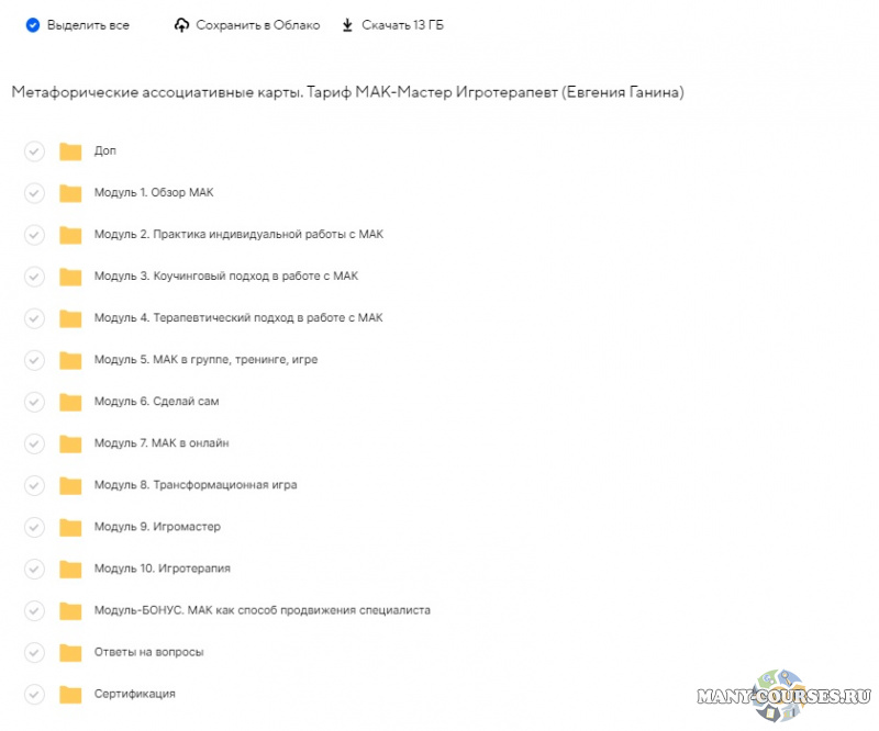 Вы находитесь на странице товара «Евгения Ганина - Метафорические ассоциативные карты. Тариф МАК-Мастер Игротерапевт», это материал 2021 года, который, мы надеемся, принесет вам пользу. Данный курс расположен на платформе «Облако Mail».Скриншоты с платформы на которой расположены материалы вы можете найти выше. В нашем магазине курсы доступны по самым выгодным ценам. Вы можете перейти на оригинальный продажник, после чего принять решение о покупке. Если бы вы покупали у самого автора, то данный курс вам обошелся 34500 рублей. Вы получаете этот курс, купив в нашем магазине MANY-COURSES.NET, с огромной скидкой, всего 590 рублей. Обучающий курс входит в рубрику «Эзотерика и оккультизм», вы можете поискать другие сливы курсов в этой рубрике. В нашем магазине Вы найдёте ещё много курсов от автора «Евгения Ганина», достаточно ввести в поиск имя автора.