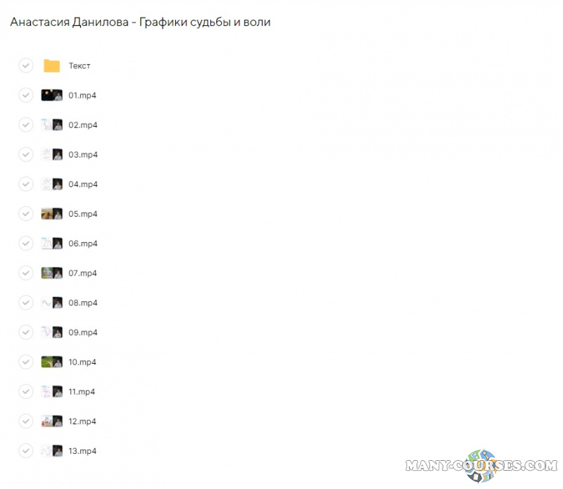 Вы находитесь на странице товара «Анастасия Данилова - Графики судьбы и воли», это материал 2020 года, который, мы надеемся, принесет вам пользу. Данный курс расположен на платформе «Облако Mail».Скриншоты с платформы на которой расположены материалы вы можете найти выше. В нашем магазине курсы доступны по самым выгодным ценам. Если бы вы покупали у самого автора, то данный курс вам обошелся 5200 рублей. Вы получаете этот курс, купив в нашем магазине MANY-COURSES.NET, с огромной скидкой, всего 190 рублей. Обучающий курс входит в рубрику «Эзотерика и оккультизм», вы можете поискать другие сливы курсов в этой рубрике. В нашем магазине Вы найдёте ещё много курсов от автора «Анастасия Данилова», достаточно ввести в поиск имя автора.