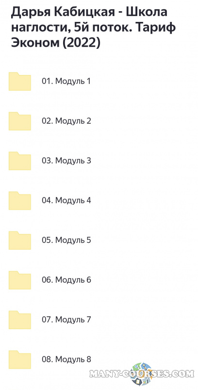 Вы находитесь на странице товара «Дарья Кабицкая - Школа наглости. Тариф Эконом», это материал 2022 года, который, мы надеемся, принесет вам пользу. Данный курс расположен на платформе «Яндекс Диск».Скриншоты с платформы на которой расположены материалы вы можете найти выше. В нашем магазине курсы доступны по самым выгодным ценам. Вы можете перейти на оригинальный продажник, после чего принять решение о покупке. Если бы вы покупали у самого автора, то данный курс вам обошелся 47954 рублей. Вы получаете этот курс, купив в нашем магазине MANY-COURSES.NET, с огромной скидкой, всего 690 рублей. Обучающий курс входит в рубрику «Эзотерика и оккультизм / Психология», вы можете поискать другие сливы курсов в этой рубрике. В нашем магазине Вы найдёте ещё много курсов от автора «Дарья Кабицкая», достаточно ввести в поиск имя автора.